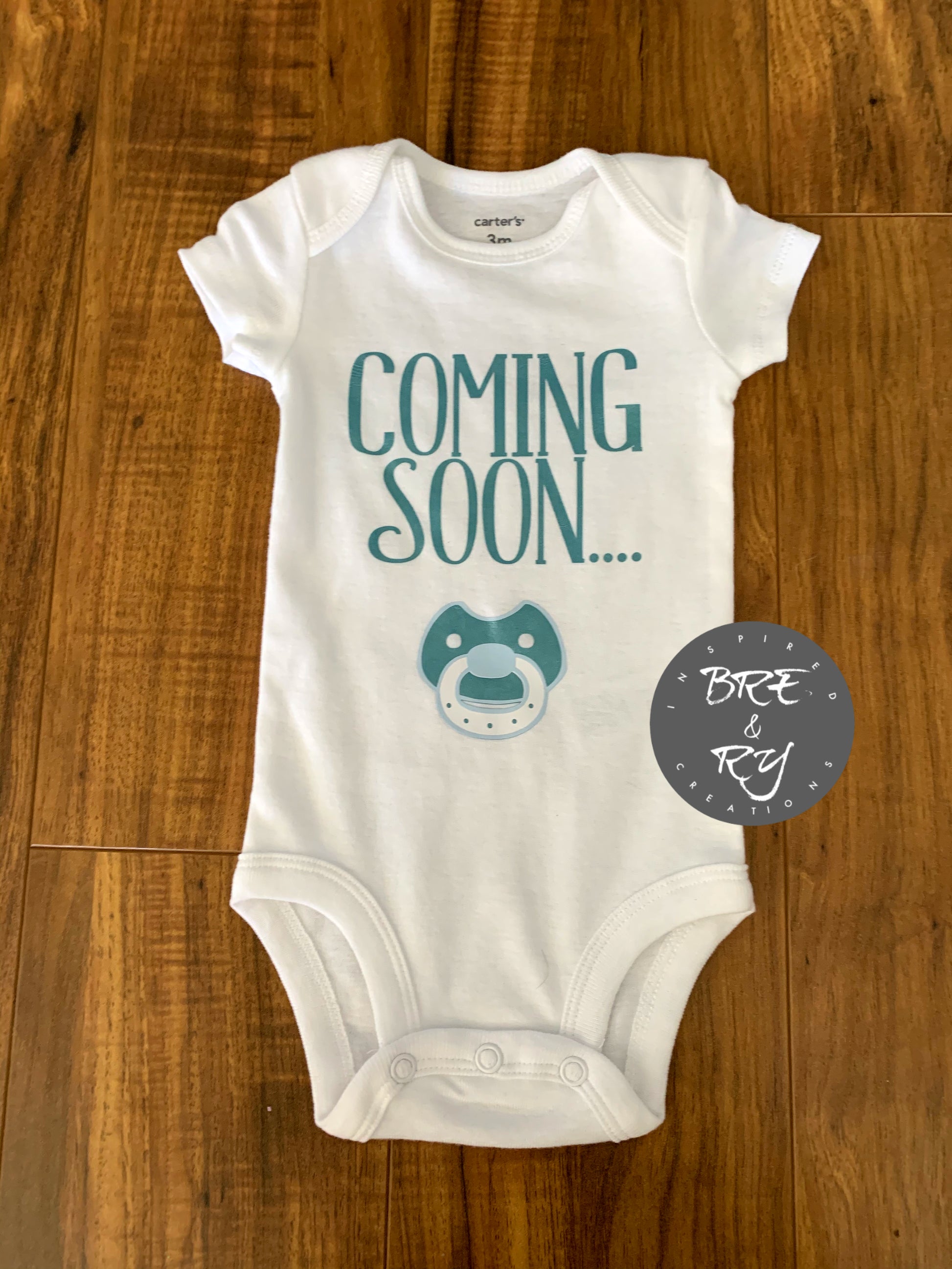 Use this onesie announce a pregnancy to friends and family! Wrap it as a gift or use it as a photo prop.